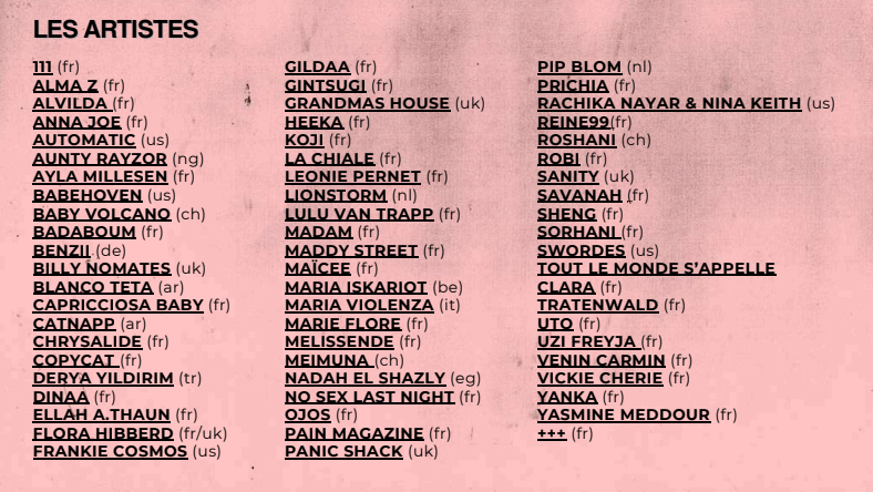 Perdu ! Eh bien non il ne s’agit pas du trio français GRANDMA’S ASHES qui s’était produit en 2021 dans le cadre du Festival Les FEMMES S’EN MELENT, eh bien non, il s’agit d’un quatuor irrésistible issue de la scène anglaise, précisément de BRISTOL qui logera peut-être dans l’hôtel du même non à Paris, on leur souhaite. Ce quatuor composé de Yasmin, Poppy, Zoé et Polly est truffé de dynamite rock, pulvérisant les codes, créant les siens et s’en débrassant aussitôt, Elles n’y vont pas avec le dos de la cuillère et susciteront sans aucun doute un engouement du public. L’intention artistique de GRANDMAS HOUSE est directe, abrasive, sans concession, poétique dans ses contours et rebelle de tout évidence. Vous repartirez conquises et conquis de cette belle rencontre.