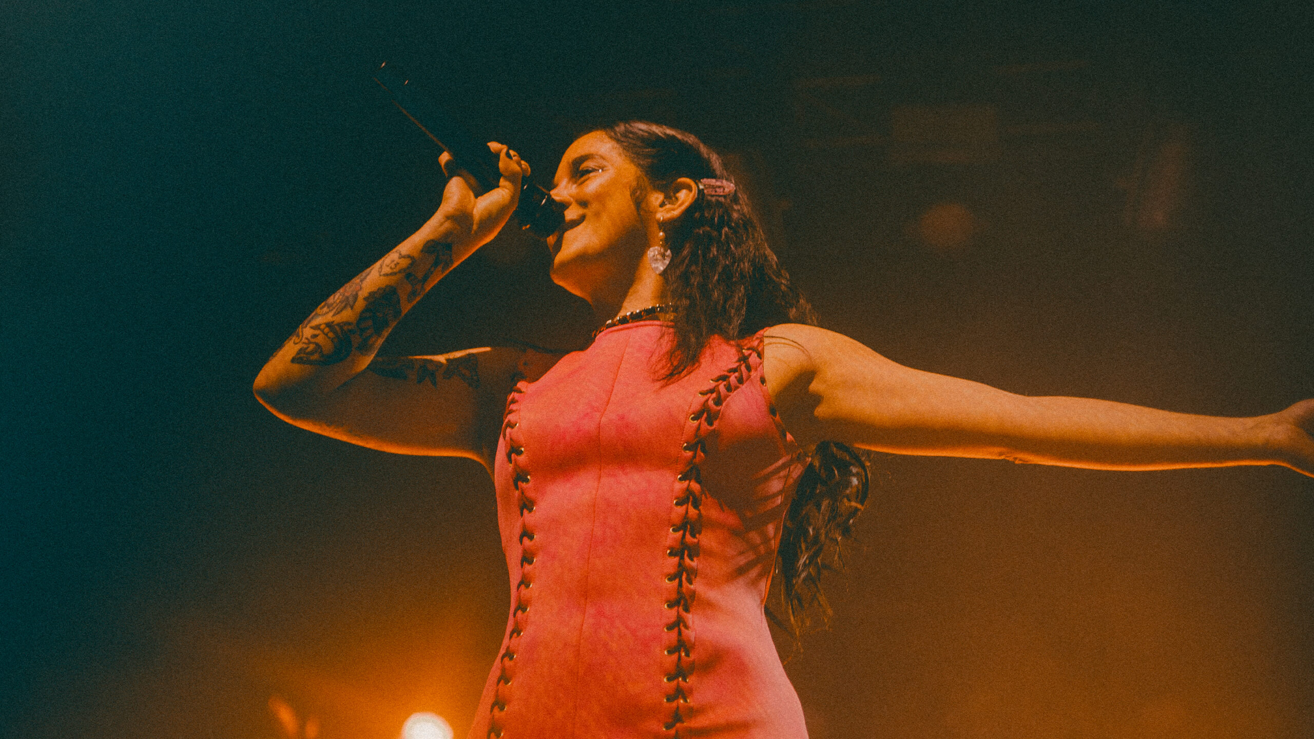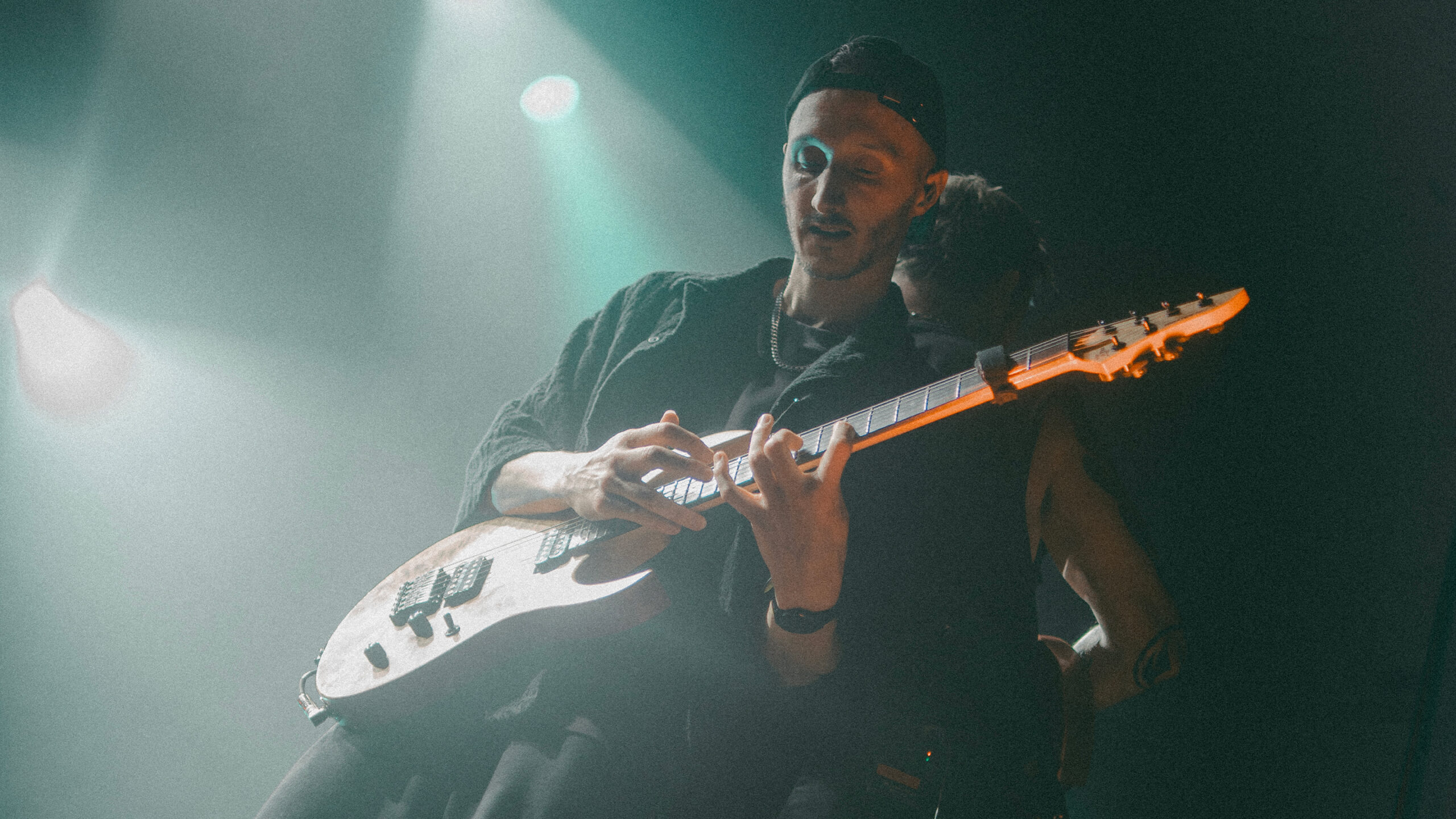 Et comme chaque concert marquant doit avoir son lot de surprises, le quintet invite sur scène nul autre que Matteo Gelsomino, ex-chanteur du groupe jusqu’à 2020, sur ‘C’est la vie’ ! Ce moment de scène partagé entre l’artiste qui a participé à l’émergence du projet et celle qui l’a sauvé de la scission est acclamé avant de laisser place à une belle accalmie avec ‘In Heaven’ et les deux interludes ‘Rest’ et ‘Erre’. Celle-ci est ponctuée par ‘Okapi’ qui relance le pit avec son breakdown ! La fin du set se fait ressentir avec l’enchaînement des excellents ‘Mourning The Dawn’, ‘Say My Name’, ‘CRC’ et ‘Coda’, dont les scénographies étaient particulièrement prenantes.