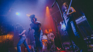 Lorsque la luminosité tombe à nouveau, un larsen saisit les oreilles du public. L’énorme ampli Ampeg gronde à son tour puis laisse place au son épais de la basse qui lance Coal Noir et leur post-punk mélancolique. Avec Chana à la batterie, Emma à la basse et James à la guitare, la chanteuse Léa colore de sa voix le Chinois aux tons bleutés du spleen. Entre phases intimistes et chorus dansant, le quatuor met la foule en mouvement, redoublant d’agressivité au fur et à mesure du set !