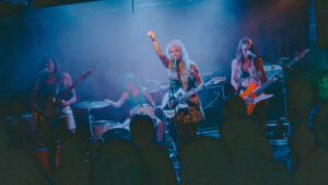 Le Chinois est frappé de plein fouet et secoué par la puissance scénique du quatuor qui partage son énergie débordante avec le public. On est vite emporté par la danse endiablée comme un fanatique dans un sabbat ; les morceaux s’enchaînent en passant notamment par les singles ‘COVID’, ‘Wasted’ ou ‘Don’t Change Me’ qui accrochent de suite la foule. Laura et Amandine n’hésitent d’ailleurs pas une seconde à descendre de scène se mêler au public, le bousculant avec effervescence. Alors que le set touche à sa fin, le quatuor lance un dernier titre, libérant Amandine de sa guitare pour ne garder que le chant dans un dernier instant vibrant. La lumière se rallume, on en veut encore, et il faudra bien se résigner jusqu’à la prochaine date…