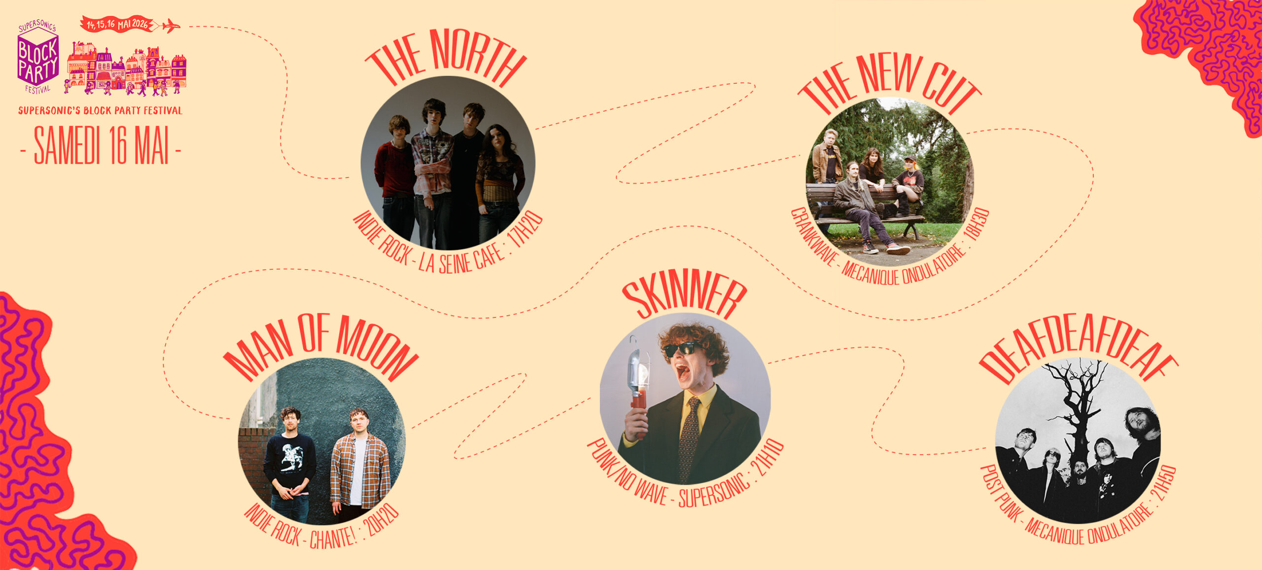 La Block Party en beauté se clôturera avec un vendredi éclectique ! Pour notre part, on débutera à La Seine Café avec The North, groupe indie rock de Leeds puis The New Cut à la Mécanique Ondulatoire ! Une petit pause avant d’enchaîner trois gros concerts avec Man Of Moon, indie rock dans la veine de Mogwai et October Drift, Skinner qu’on aura manqué la veille (mais pas deux fois !) et enfin DEAFDEAFDEAF pour finir dans la beauté et la violence le festival !